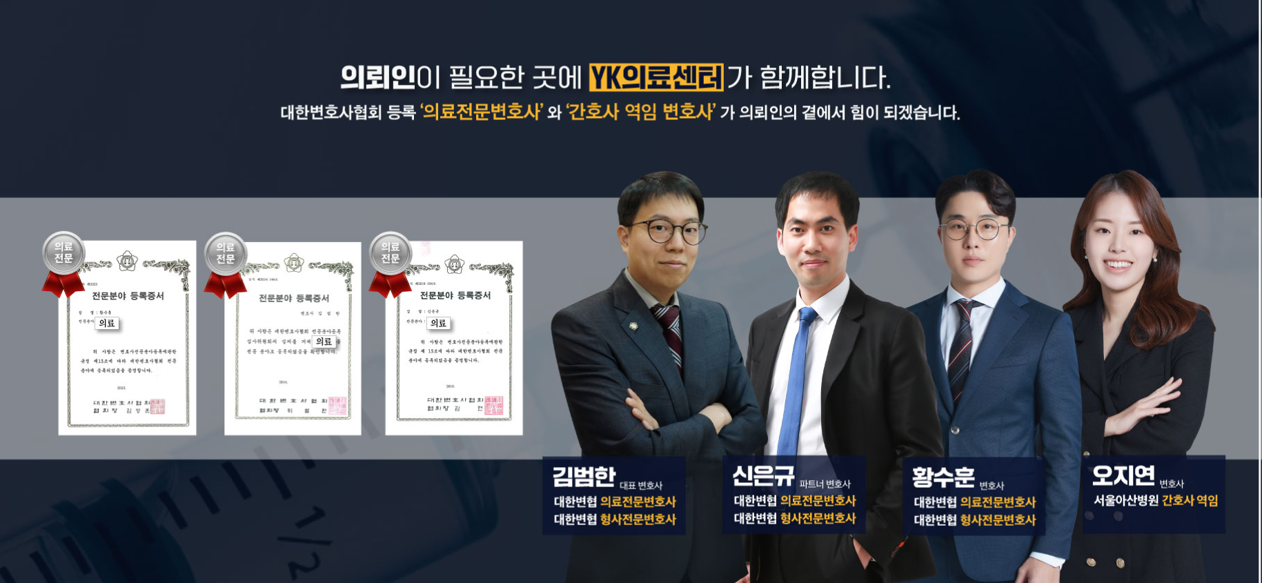 의료사건의 시작과 끝을 YK의료센터가 맡겠습니다. 의료사고란? 의료사고란 보건의료인이 환자에 대하여 실시하는 진단·검사·치료·의약품의 처방 및 조제 등의 행위로 인하여 사람의 생명·신체 및 재산에 대하여 피해가 발생한 경우를 말합니다. *(의료사고 피해구제 및 의료분쟁 조정 등에 관한 법률 제2조 제1호) 의료사고는 의사나 간호사 등의 직접적인 의료행위 등으로 인하여 발생하는 경우 뿐 아니라 정신질환이 있는 입원자가 난동을 부려 같은 병실 내의 환자가 다치는 경우와 같이 병원의 환자 관리 소홀로 인하여 발생하는 경우도 있고, 병실의 바닥이 미끄러워 넘어지는 바람에 부상을 입거나 기구의 결함으로 환자가 부상을 당하는 등 병원의 시설관리 문제로 인하여 발생하는 경우도 있습니다. *의료사고 피해구제 및 의료분쟁 조정 등에 관한 법률 제 2조 제1호 제2조(정의) 이 법에서 사용하는 용어의 뜻은 다음과 같다. <개정 2018. 12. 11., 2024. 9. 20.> 1. “의료사고”란 보건의료인(「의료법」 제27조제1항 단서 또는 「약사법」 제23조제1항 단서에 따라 그 행위가 허용되는 자를 포함한다)이 환자에 대하여 실시하는 진단ㆍ검사ㆍ치료ㆍ의약품의 처방 및 조제 등의 행위(이하 “의료행위등”이라 한다)로 인하여 사람의 생명ㆍ신체 및 재산에 대하여 피해가 발생한 경우를 말한다. 출처 : law.go.kr "법제처 국가법령정보센터" Q. 진료나 치료의 결과가 좋지 않은 것(악 결과)도 의료사고로 볼 수 있나요? 진료의 결과가 악 결과라는 사실만을 가지고 곧바로 진료채무불이행사실이나 불법행위 책임을 추정할 수는 없습니다. 판례에 따르면 의사가 환자에게 부담하는 진료채무는 질병의 치료와 같은 결과를 반드시 달성해야 할 결과채무가 아니라 환자의 치유를 위하여 선량한 관리자의 주의의무를 가지고 현재의 의학수준에 비추어 필요하고 적절한 진료조치를 다해야 할 채무 즉, 수단채무라고 보아야 할 것이므로, 위와 같은 주의의무를 다하였는데도 그 진료 결과 질병이 치료되지 아니하였다 하더라도 치료비는 청구할 수 없습니다. 따라서 단지 악 결과라는 사실만으로 의료사고로 보기는 어렵습니다. 의료사고와 의료분쟁 의료사고가 발생한 경우 환자 및 가족들이 입는 물리적·정신적 피해는 매우 큽니다. 따라서 의료사고가 발생한 경우 그 손해에 대한 배상이나 책임을 의사나 의료기관에 물음으로써 피해를 회복하여 환자 및 가족들을 위로하는 것이 반드시 필요합니다. 그리고 그것을 가능하게 하는 절차가 바로 조정·중재 및 소송 등 의료분쟁 절차를 통한 해결입니다. 의료분쟁 중 가장 대표적인 것이 의료소송입니다. 의료소송이라 하면 일반적으로는 손해배상을 전제로 하는 민사소송을 의미하지만 의사의 업무상 과실치사상죄 등의 성립여부를 다투는 형사소송이나 의료법 위반을 다투는 행정소송도 이에 포함될 수 있습니다. 다만 단지 환자에게 피해가 발생한 의료사고라고 해서 모든 경우에 의사 또는 병원이 책임을 지는 것은 아닙니다. 의료소송에 있어서 의사 혹은 병원측에 민·형사상 또는 행정상 책임을 지우려면 의료인의 과실이 있어야 합니다. 따라서 의료소송을 제기하기 위해서는 1. 환자가 입은 피해가 의료사고에 해당하는지 여부(피해자의 손해의 발생) 2. 사고의 원인이 의료인에게 책임 있는 과실이라고 볼 수 있는지 여부(의료인의 고의·과실, 위법성, 행위와 결과 사이의 인과관계) 3. 구체적으로 얼마나 배상을 받을 수 있는지 등을 차례대로 살펴보아야 합니다.